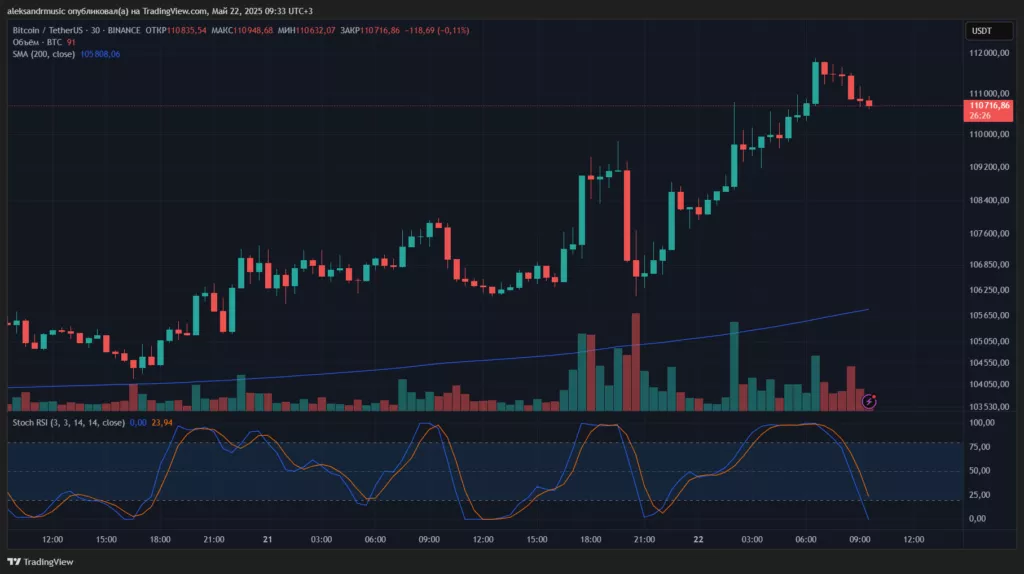 Котировки цифрового золота достигли максимума на отметке $111 880 в паре BTC/USDT биржи Binance. На момент написания актив торгуется в районе $110 650.