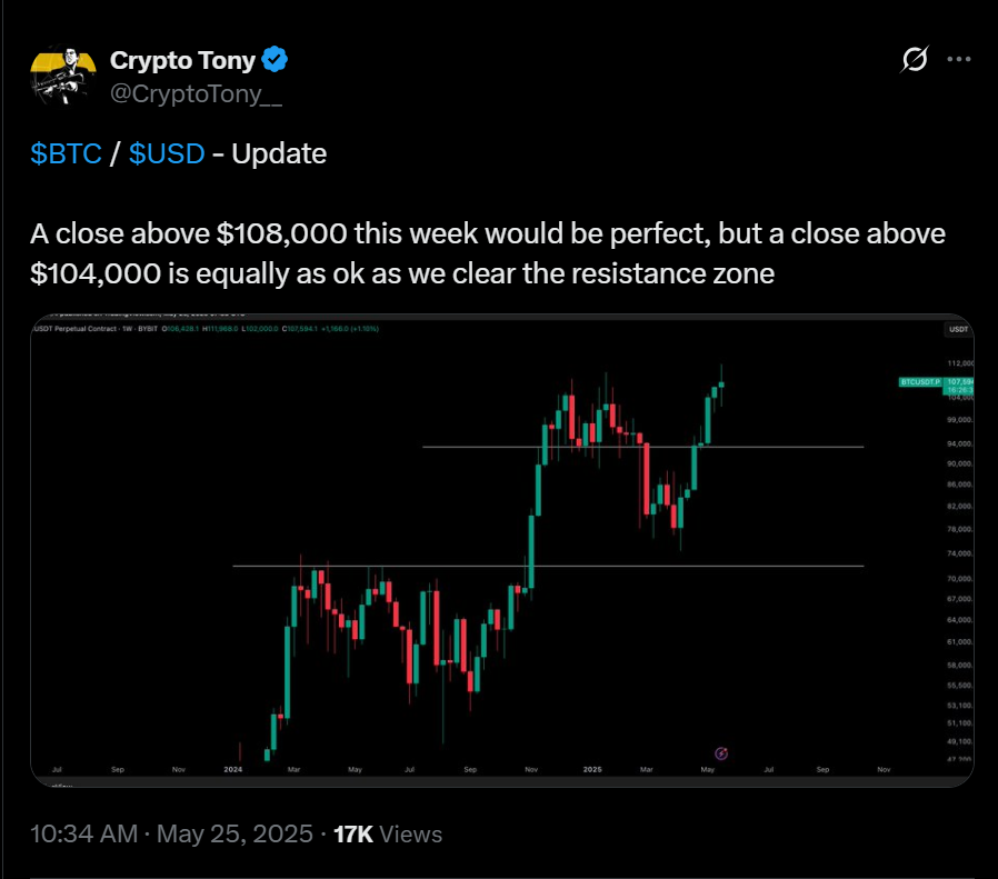 Похожую точку зрения высказал и популярный трейдер Crypto Tony, заявив, что даже падение ещё на $4,000 к закрытию недели не станет фатальным.
