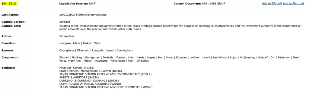 Губернатор Техаса Грег Эбботт одобрил закон SB 21, который разрешает создание автономного биткоин-резерва.