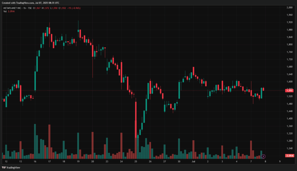 Рыночная капитализация Metaplanet держится на отметке $6,96 млрд.