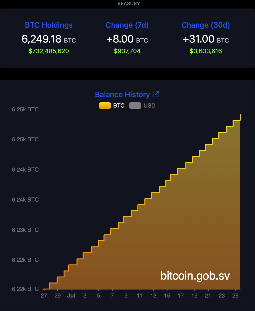 Биткоин-казначейство Сальвадора. Источник: Управление по биткоинам Сальвадора
