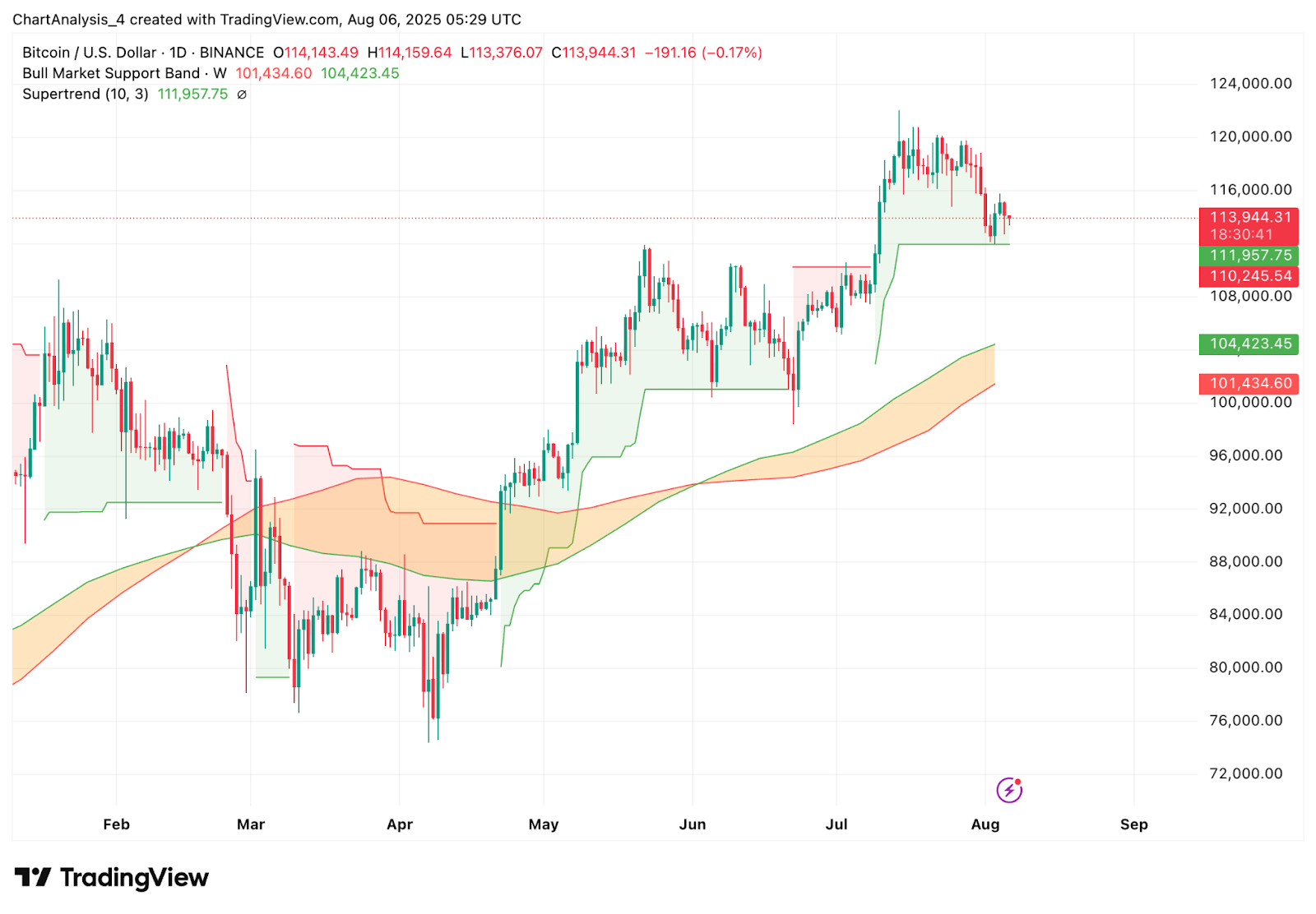 | Поддержка 2 | 111 950 долларов США (поддержка Supertrend) |
