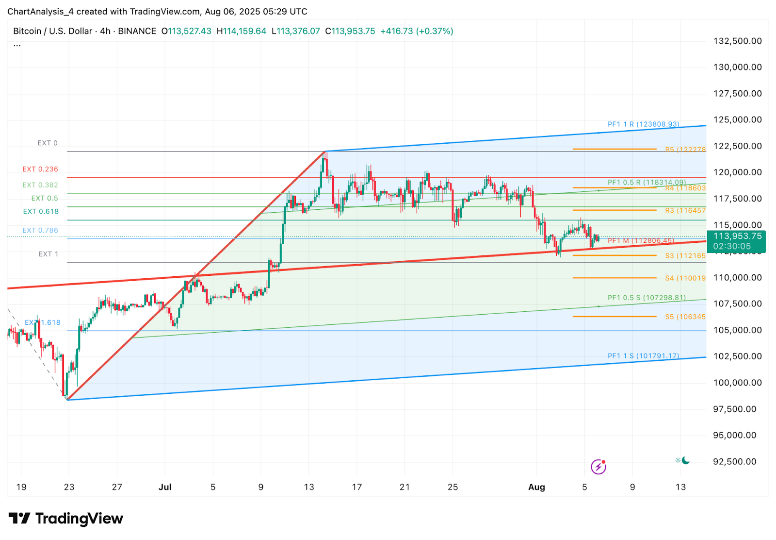 Пока цена биткоина держится выше $112 800, потенциальный отскок остаётся возможным. Отскок от восходящего канала и уровня поддержки Фибоначчи S3 на $112 165 может привести к повторному тестированию отметки $115 200, а затем к более сильной зоне сопротивления в районе $116 400. Успешный прорыв этой отметки может подтолкнуть $BTC к $118 300.