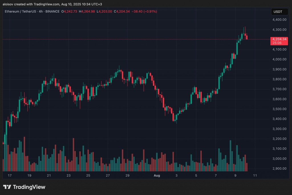Ethereum тем временем торгуется на отметке $4 204, прибавив 25% за последние 7 дней.