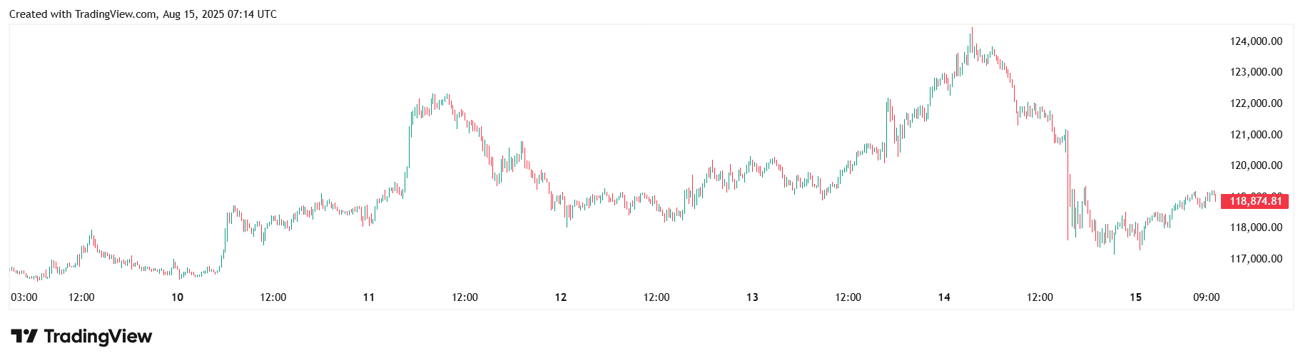 На момент написания биткоин торгуется чуть ниже $119 000. Напомним, что в ночь на 14 августа курс актива обновил исторический максимум выше $124 000.