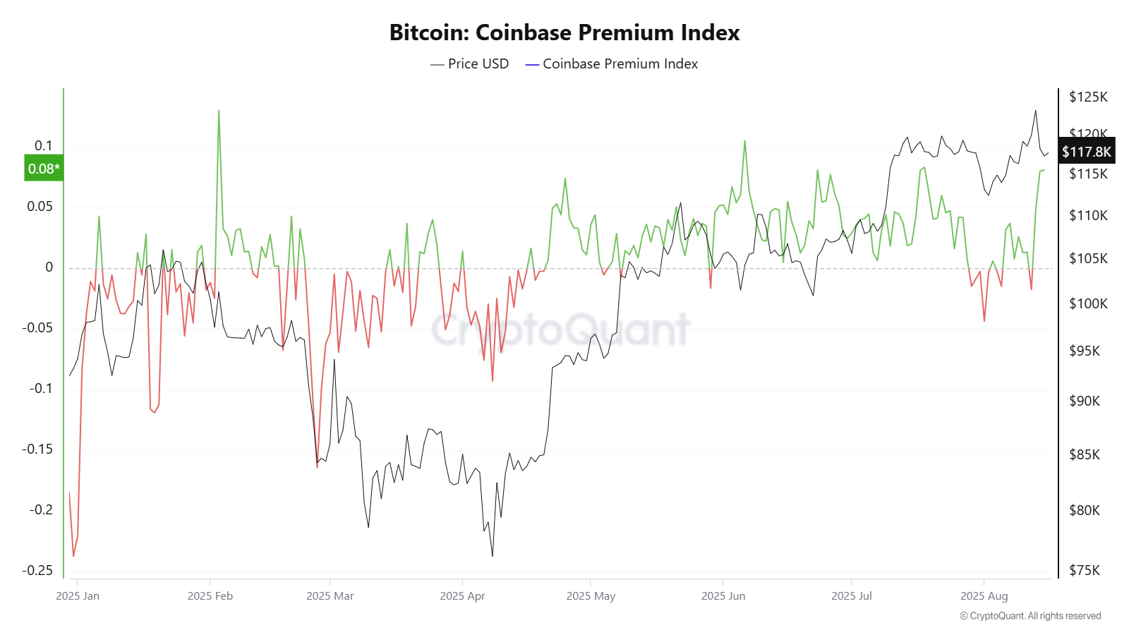 Несмотря на падение первой криптовалюты к $117 000, трейдеры продолжают наращивать позиции. На это указали премия Coinbase и ряд других индикаторов.