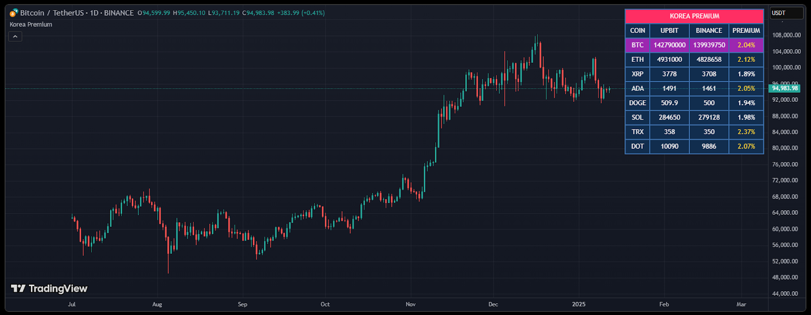 Аналогичная по механике корейская «кимчи-премия» также вышла на положительный уровень, свидетельствуя о повышенном спросе.