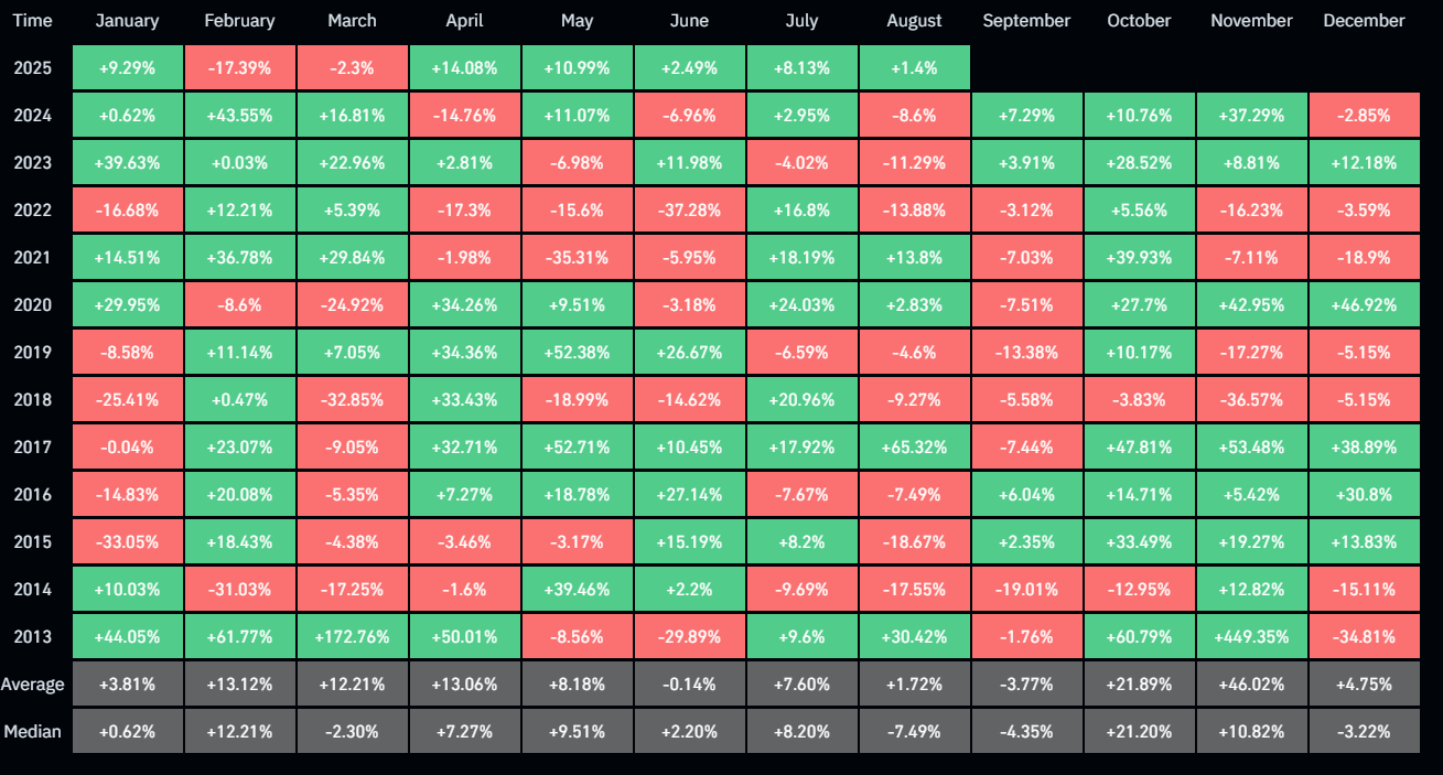 Однако продолжение коррекции может обеспечить историческая сезонность. Август часто оказывался слабым месяцем для цифровых активов. С 2017 года среднее пиковое падение BTC в этот период составляло примерно 21,7%.