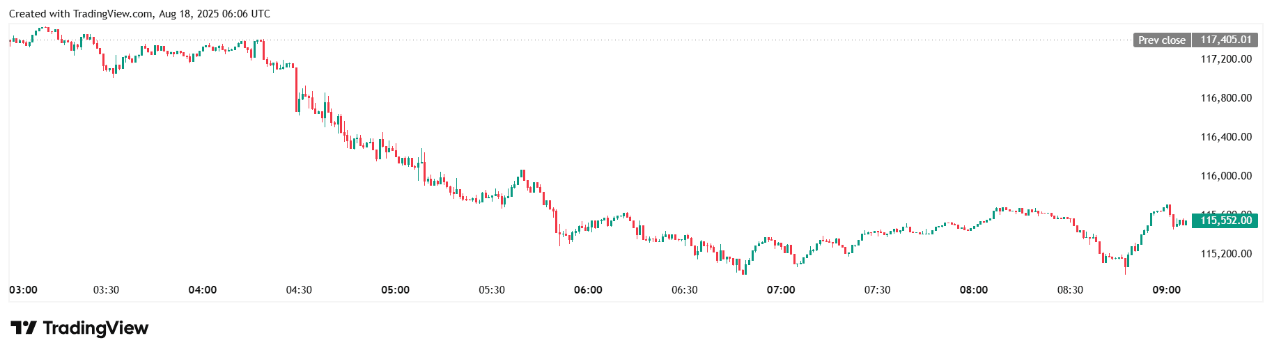 Утром 18 августа 2025 года курс биткоина опустился до $115 000 в моменте, согласно TradingView. Коррекцией отметились и другие активы, что вызвало волну ликвидаций на почти $481 млн, по данным CoinGlass.