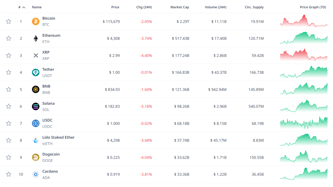 На момент написания биткоин торгуется по $115 552. На суточном графике просадка составляет 1,6%, на недельном — 3%.
