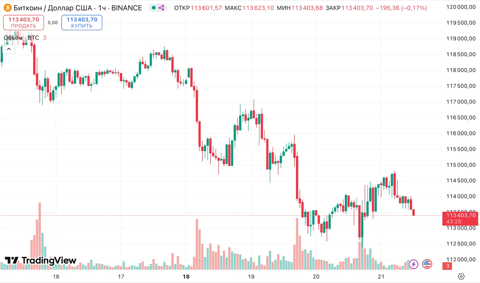 После обновления исторического максимума на уровне $124 128 цена первой криптовалюты снизилась более чем на 8%, до $113 403.
