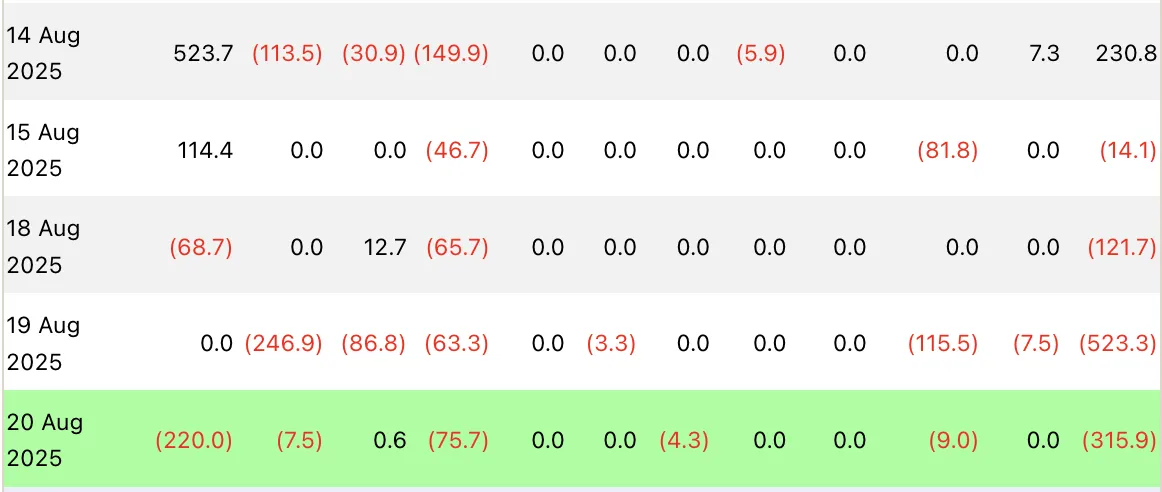 По словам экспертов, спрос на биткоин ослабевает, на что указывают оттоки из ETF. За последние четыре торговых дня инвестпродукты потеряли $975 млн.