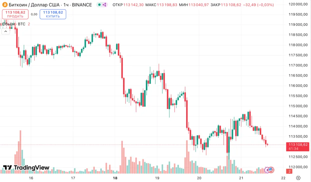 За последние сутки первая криптовалюта подешевела на 0,4%, согласно CoinGecko. На момент написания актив торгуется по $113 108.