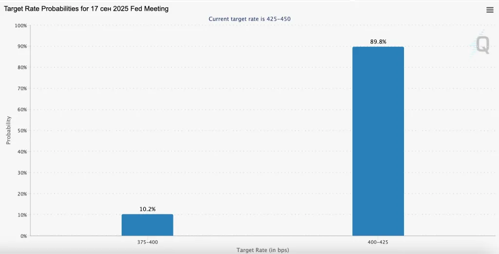 На момент написания участники рынка оценивают вероятность снижения ставки в 100%. Большинство инвесторов ожидает, что показатель опустится с текущих 4,25-4,5% до 4-4,25%. При этом некоторые ставят на более низкий диапазон — 3,75-4%.