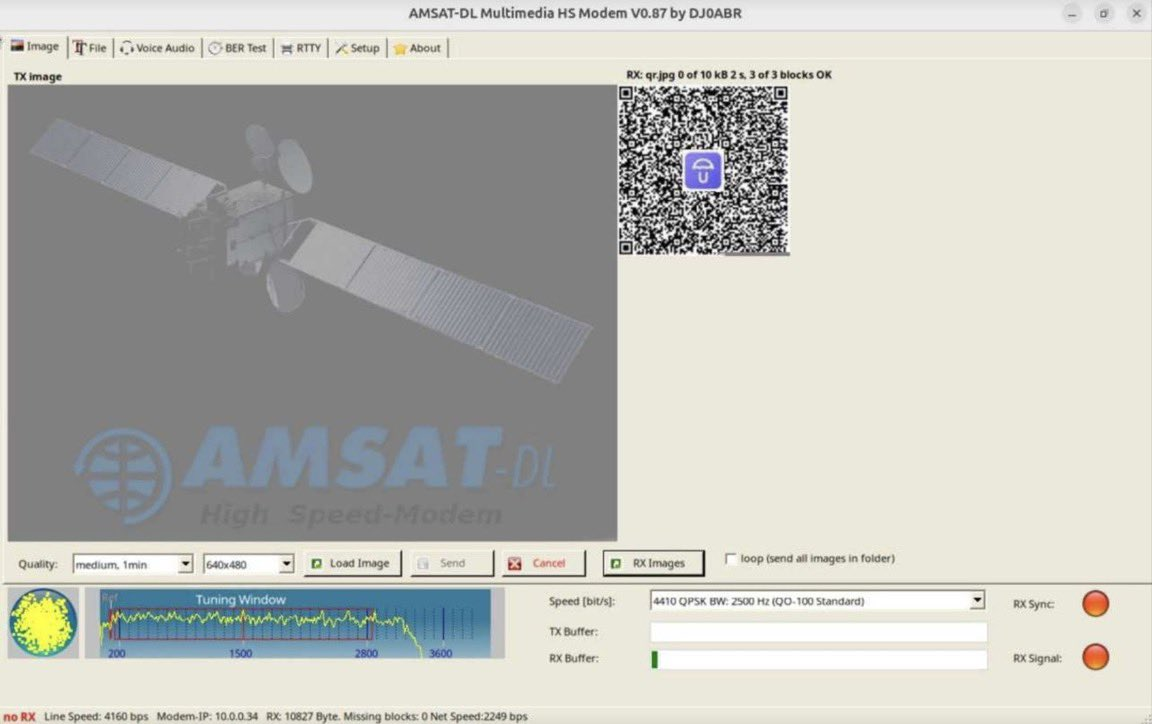 - Этот QR-код был передан через программу AMSAT-DL High Speed Modem, которая преобразует цифровые данные в радиосигнал.