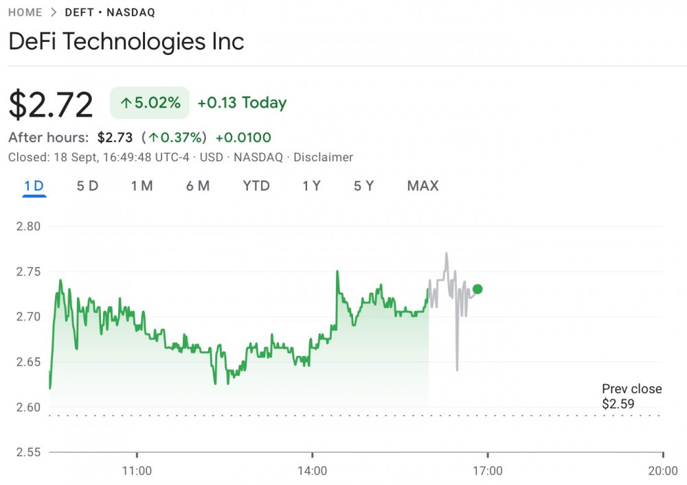 Цена акций DeFi Technologies. Источник: Google Finance.