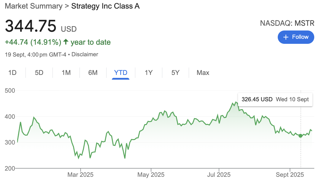 Источник: Google; цена акций MSTR на 22 сентября 2025 года