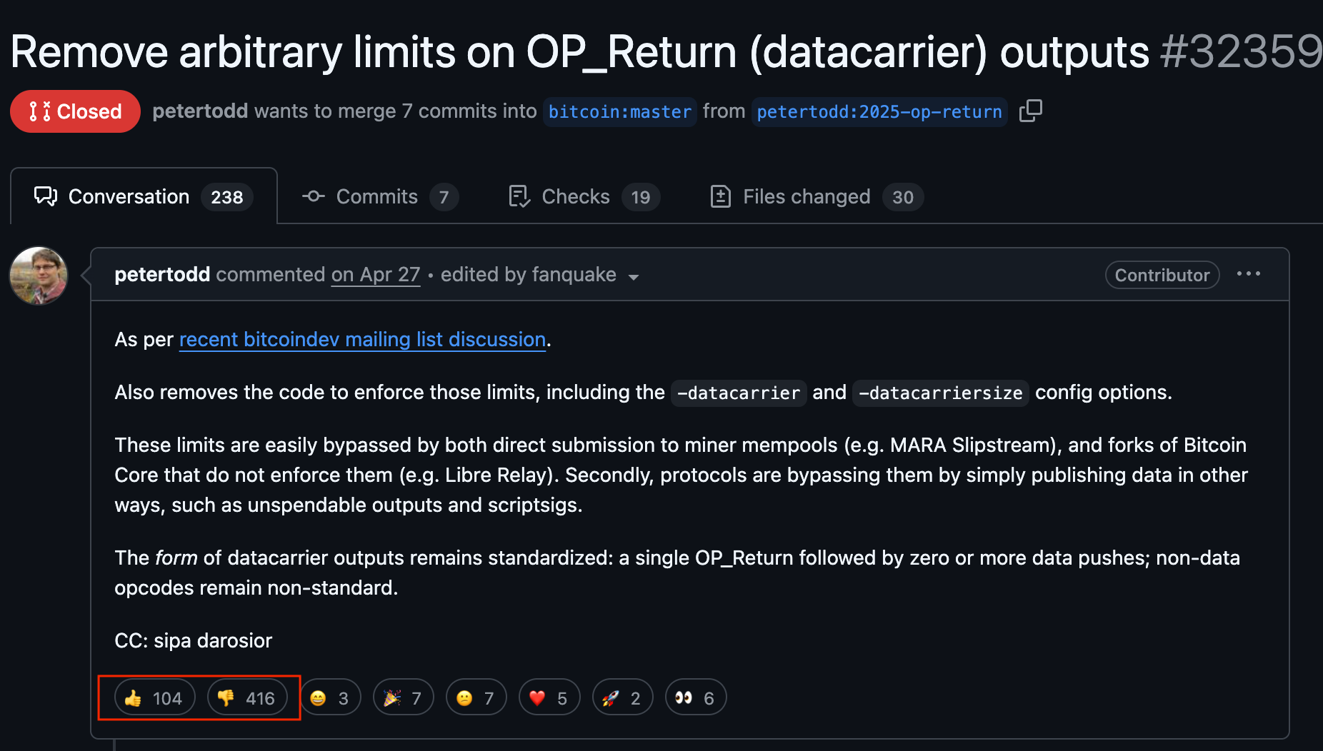 Запрос на снятие ограничения OP_Return был крайне непопулярен в биткоин-сообществе, но все равно был принят. Источник: GitHub