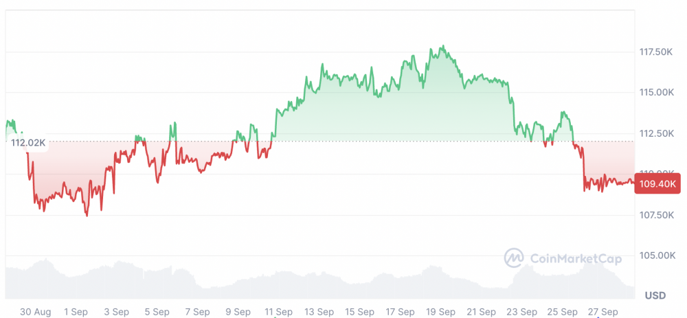 По данным CoinMarketCap, на момент публикации биткоин торгуется на уровне 109 400 долларов, снизившись на 1,97% за последние 30 дней.