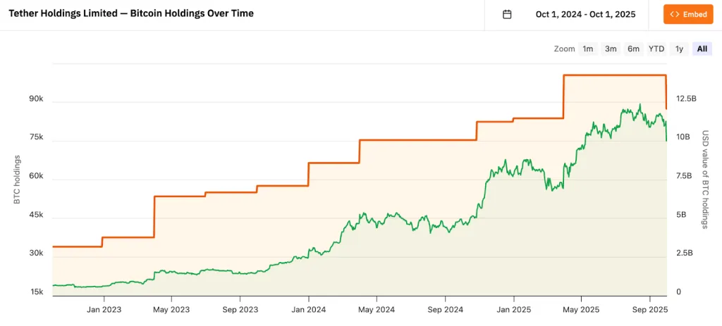 Just In: Tether (@Tether_to) has bought 8,888.889 $BTC worth $1B, on the last day of Q3 2025.