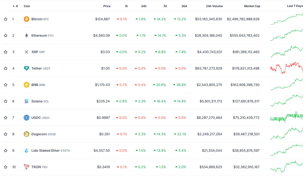 К моменту написания актив скорректировался до $124 900. За прошедшую неделю биткоин прибавил 14%.