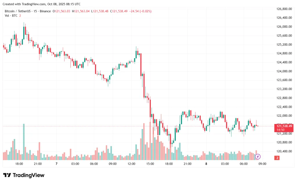 На момент написания первая криптовалюта торгуется у отметки $121 600. За сутки актив подешевел на 1,7%, согласно CoinGecko.