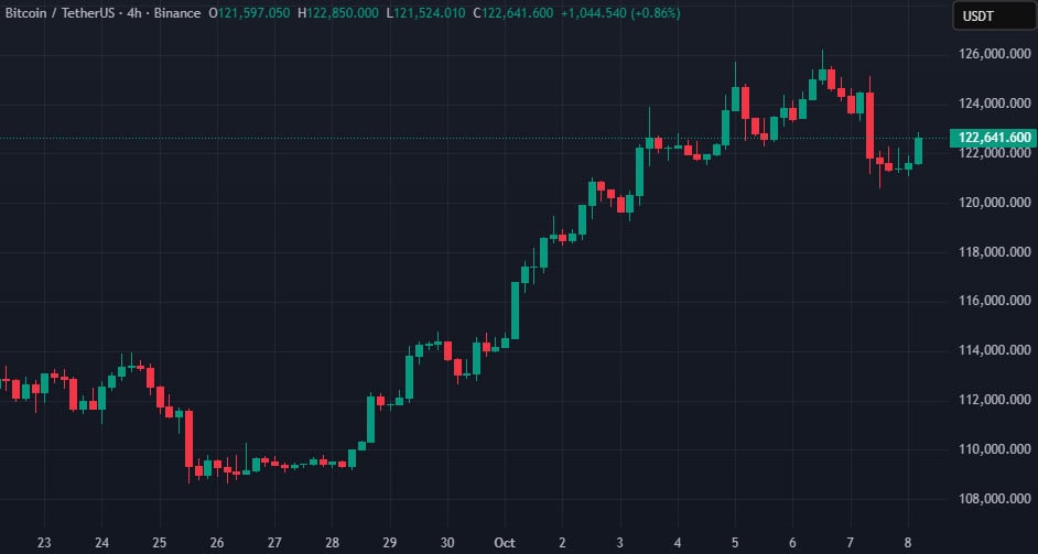 Ранее в QCP Capital заявили, что биткоин растет как защитный актив на фоне шатдауна правительства США. На момент написания первая криптовалюта торгуется вблизи отметки в $123 000: