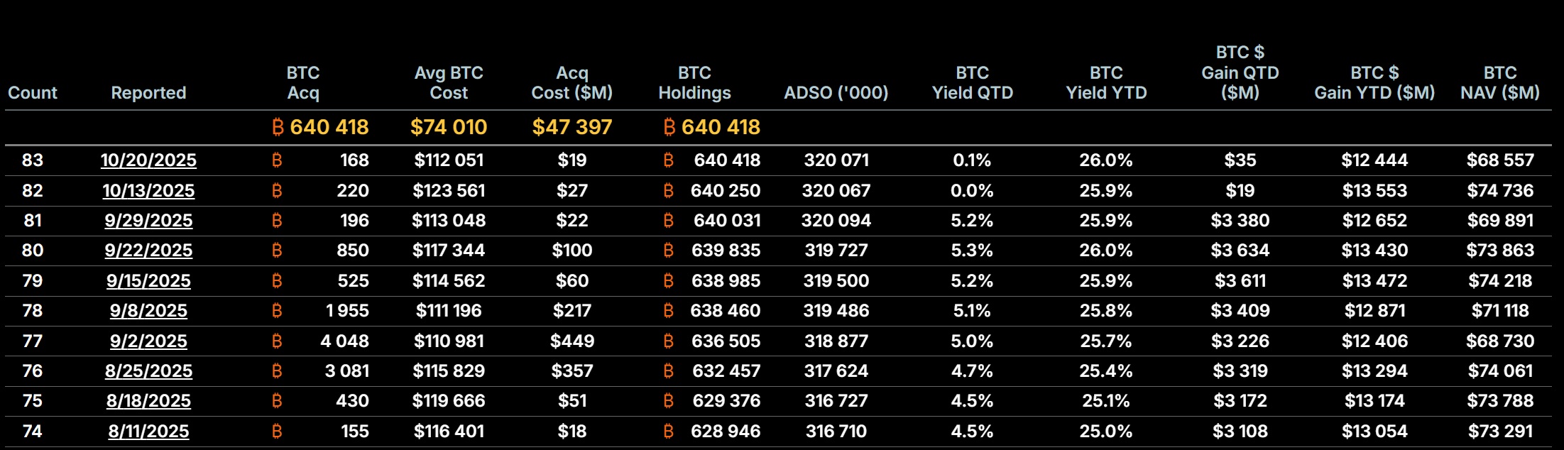 13 октября компания возобновила покупки после недельной паузы. Тогда Strategy добавила на балансы всего 220 BTC на $27,2 млн.