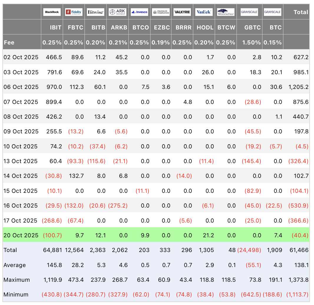 20 октября биржевые фонды, торгующие спотовыми криптовалютами, зафиксировали отток капитала. Спотовые биткоин-ETF показали чистый отток в $40,5 млн, в то время как из спотовых Ethereum-ETF ушло $145,7 млн, согласно данным SoSoValue. Это произошло после того, как биткоин-ETF зафиксировали второй по величине недельный чистый отток инвестиций на прошлой неделе стоимостью $1,22 млрд.