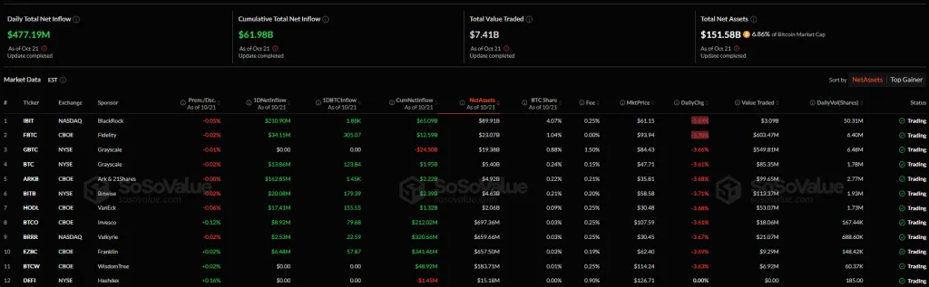 По подсчетам Хисбека, биржевой фонд IBIT от BlackRock обеспечил конвертацию первой криптовалюты «китами» на сумму более $3 млрд. В общей сложности американские эмитенты поглотили монеты стоимостью $151 млрд — около 6,8% эмиссии.