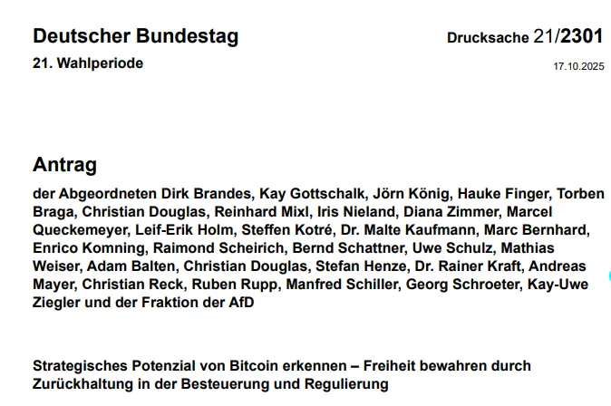 Документ на рассмотрение Бундестага направила партия «Альтернатива для Германии». Ее цель — добиться смягчения регулирования для биткоина.