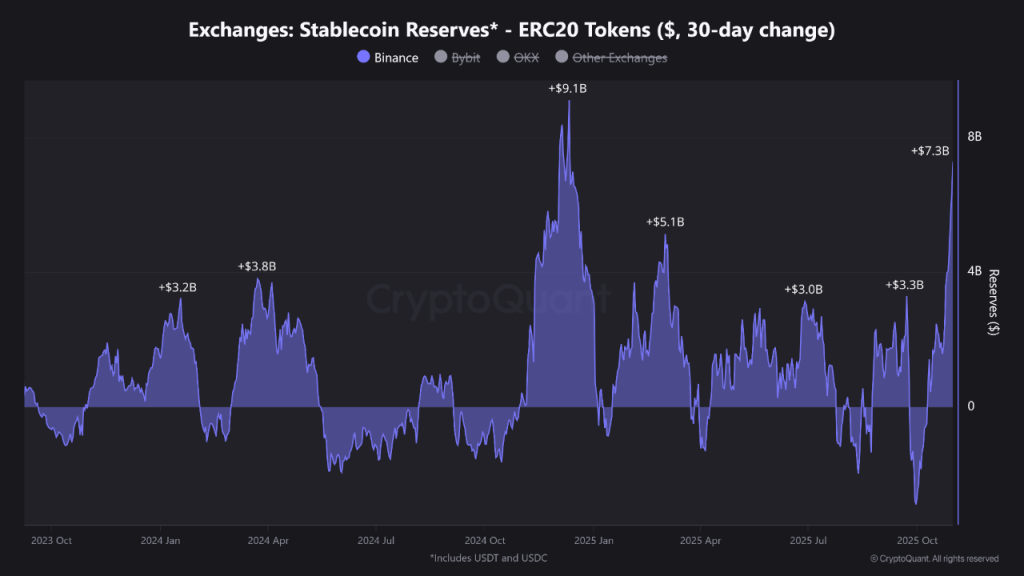 В то же время приток стейблкоинов на Binance достиг $7,3 млрд — максимальный показатель с 11 декабря 2024 года, отметил Maartun. Это свидетельствует о росте рыночной активности.