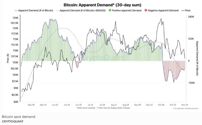 Во-первых, спотовый спрос на биткоин продолжает снижаться, подчеркнул он.