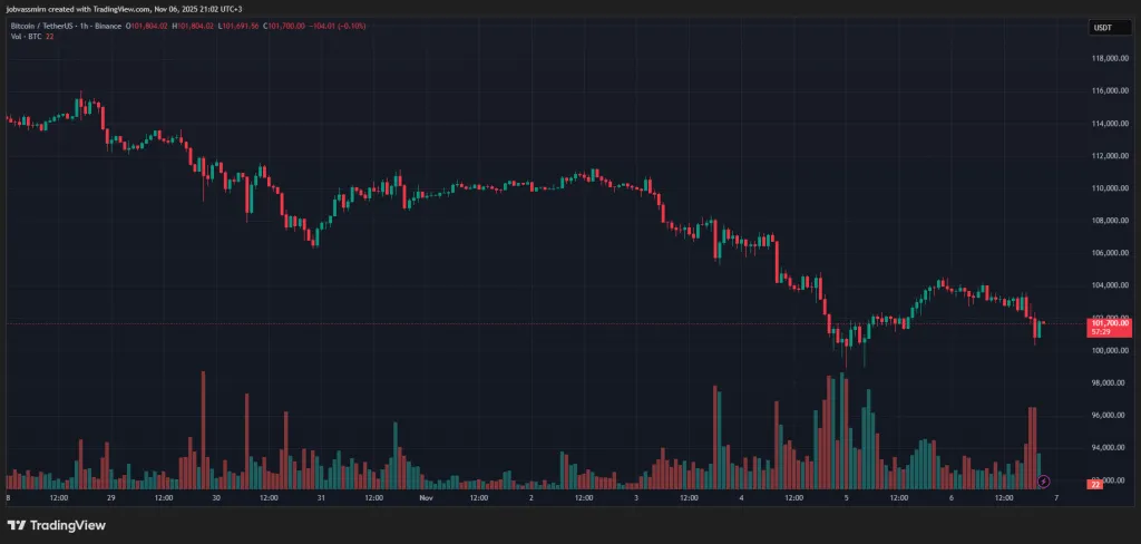На момент написания первая криптовалюта торгуется около $101 700, за сутки потеряв 3%.