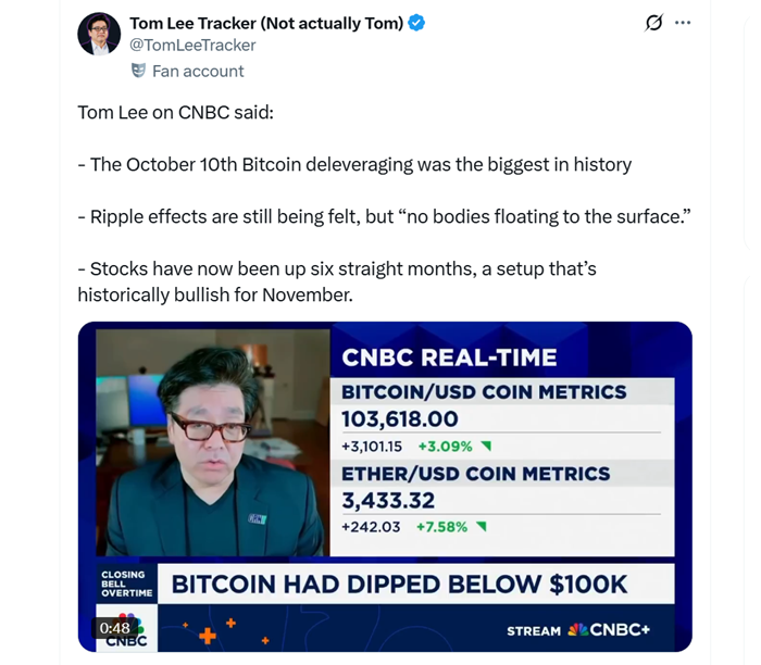 Председатель BitMine Immersion Tech и аналитик Fundstrat Том Ли в эфире CNBC также отметил пагубное влияние дампа 10 октября на настроения инвесторов.