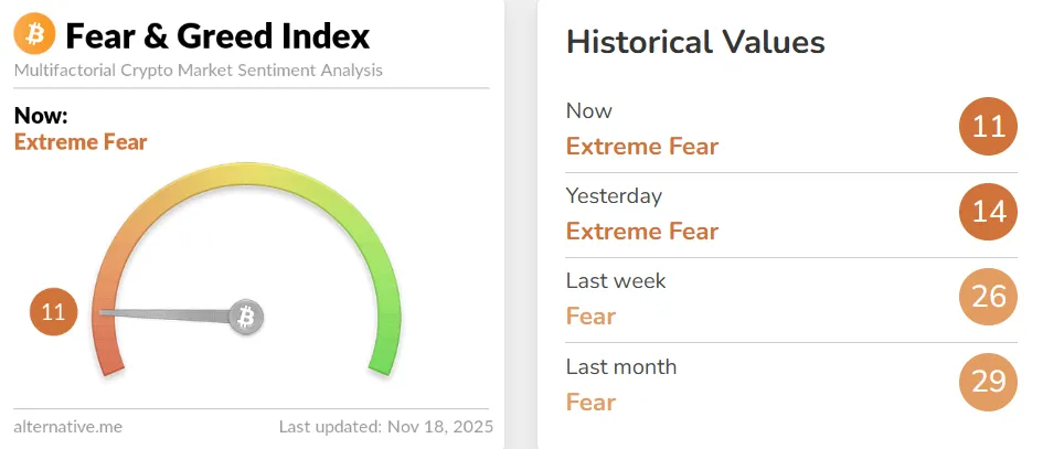 Для восстановления доверия покупателям необходимо вернуть котировки выше $90 000. Настроения на рынке остаются подавленными: индекс страха и жадности находится на отметке 11.