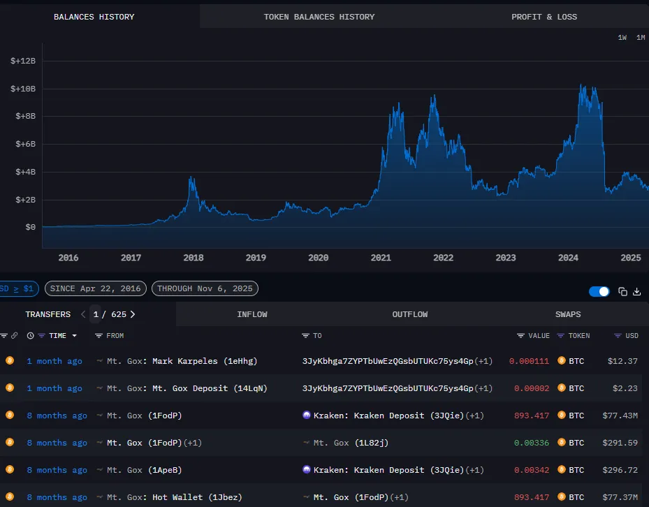 Связанный с обанкротившейся биржей Mt.Gox кошелек перевел 10 608 BTC на сумму более $953 млн на новый адрес. Это первая крупная транзакция за последние восемь месяцев.