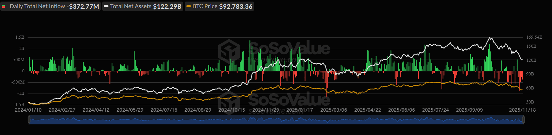 18 ноября 2025 года по iShares Bitcoin Trust (IBIT) был зафиксирован чистый суточный отток капитала в $523,15 млн, согласно SoSoValue. Это крупнейшее значение с момента выхода продукта на американский рынок.