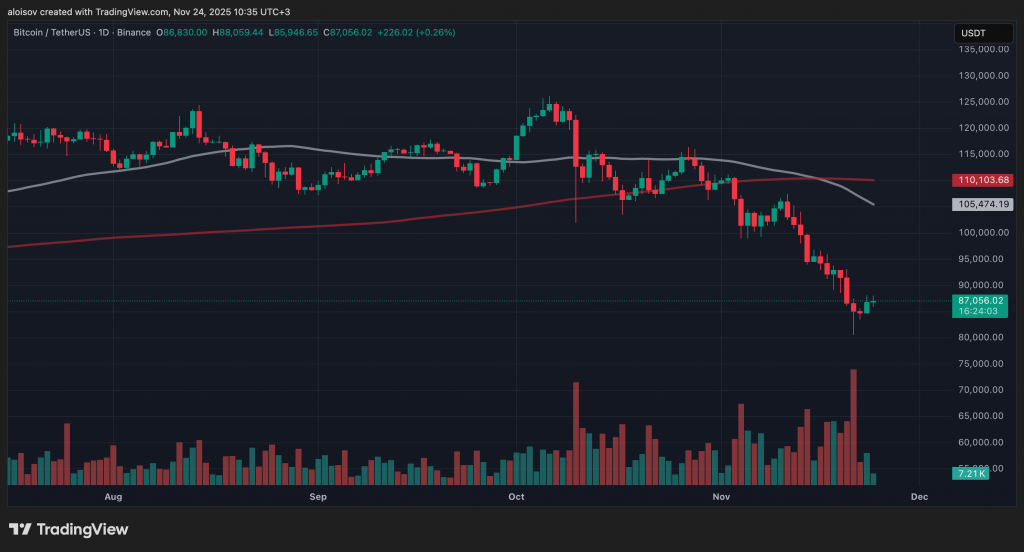 Биткоин восстановился до $88 000 после того, как 21 ноября приблизился к уровню $80 000, и аналитики прогнозируют продолжение роста на фоне снижения давления продаж и растущих ожиданий снижения процентных ставок Федеральной резервной системы.