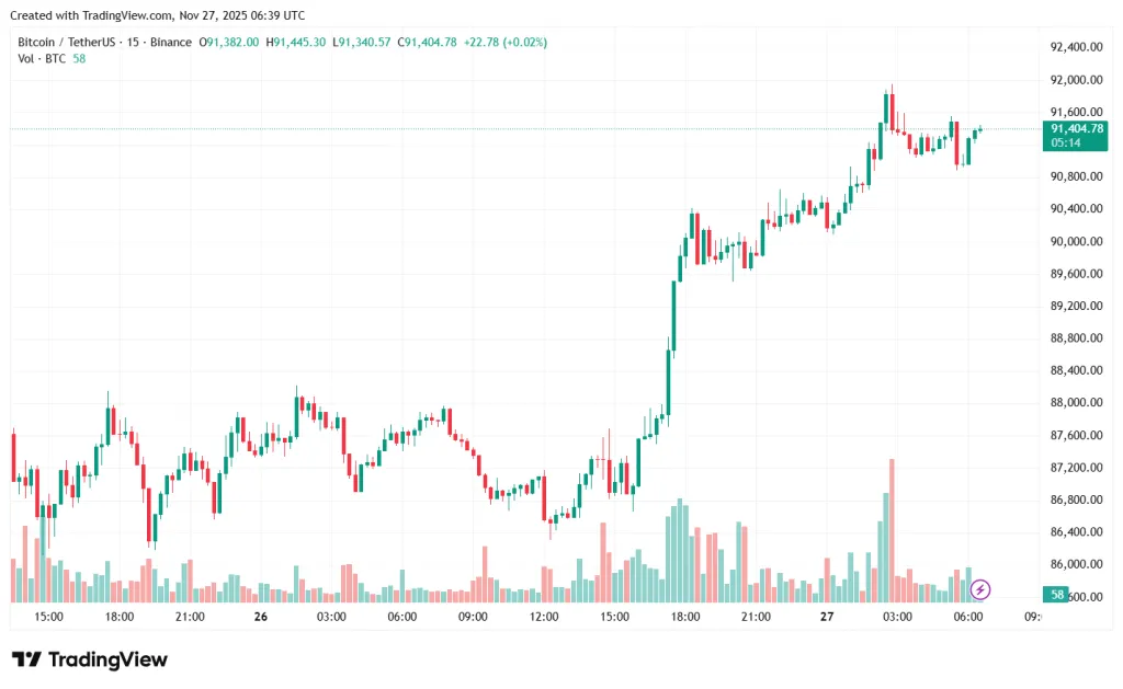 Напомним, 24 ноября первая криптовалюта продемонстрировала признаки восстановления после волны ликвидаций и распродаж. Цена актива достигла отметки ~$87 900.