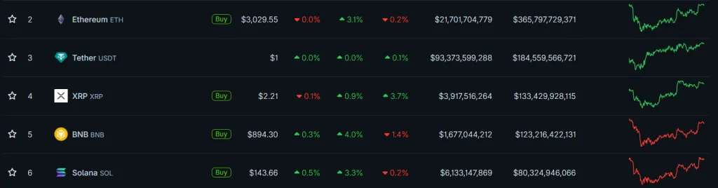 - Ethereum вырос на 3,1%, достигнув $3029;