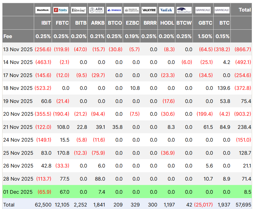 Американские спотовые биткоин-ETF, один из основных драйверов роста биткоина в 2025 году, усилили значительное давление на снижение в ноябре, зафиксировав чистый отрицательный отток в размере 3 480 000 000 долларов США во втором худшем месяце за всю историю наблюдений, согласно данным Farside Investors.