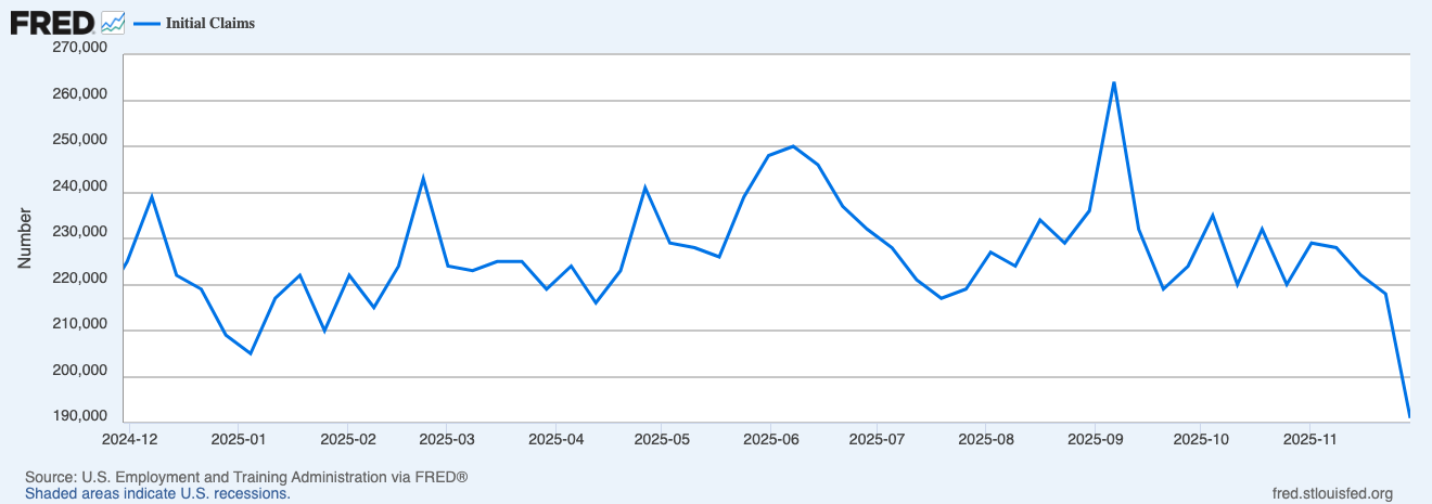 Как первичные, так и текущие заявки оказались ниже ожиданий, согласно данным St. Louis Fed.