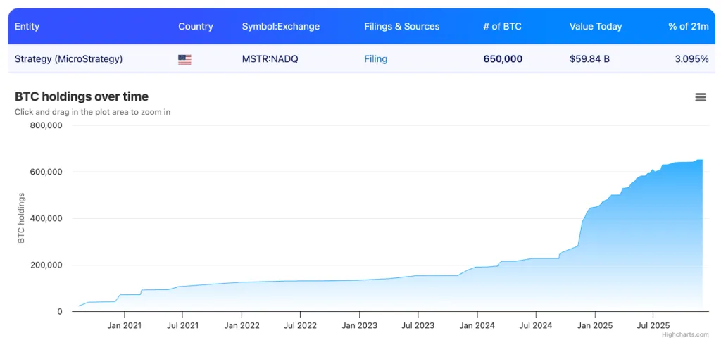 Совокупный объем первой криптовалюты на балансе фирмы достиг 650 000 BTC, что оценивается в $59,8 млрд.