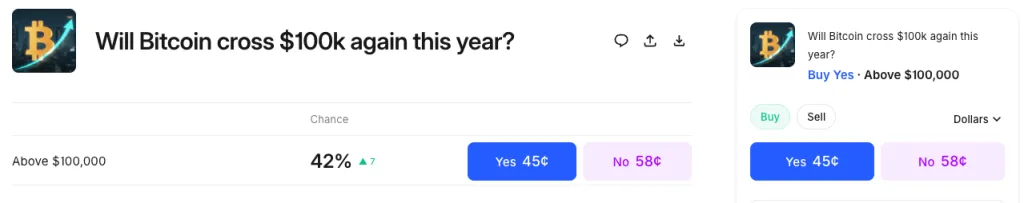 Рынки предсказаний «усомнились» в биткоине по $100 000 до конца года