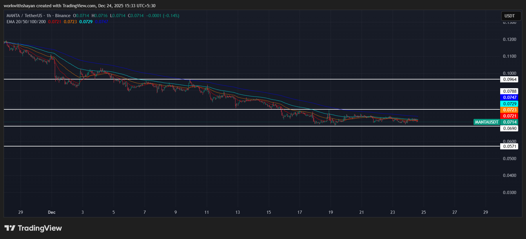 Краткосрочные ЭМА сжимались плотно, сигнализируя о снижении импульса. Такое сжатие часто предшествует расширению волатильности. Кроме того, индикатор Supertrend оставался медвежьим, ограничивая восходящее движение во время подборов.