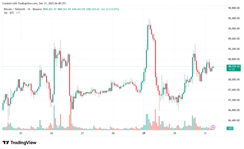 На момент написания биткоин торгуется по $88 524 (+1,2%).