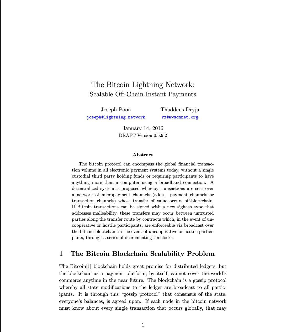 Whitepaper сети Bitcoin Lightning Network. Источник: Bitcoin Lightning Network