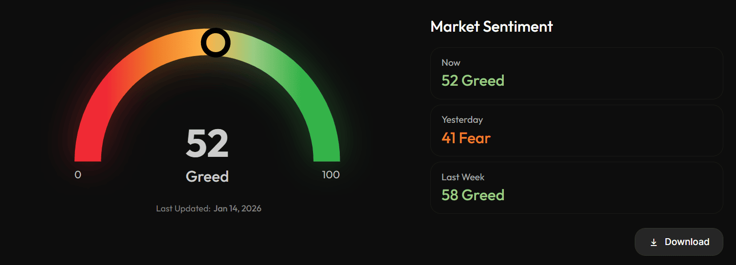 - Индекс страха и жадности за сутки подскочил на 11 пунктов.