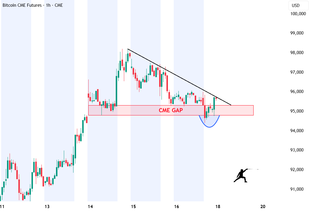 Rekt Fencer сообщает, что биткоин заполнил «гэп» на фьючерсах CME на уровне $94 800, что может стать последней коррекцией перед тестом отметки в $100 000.